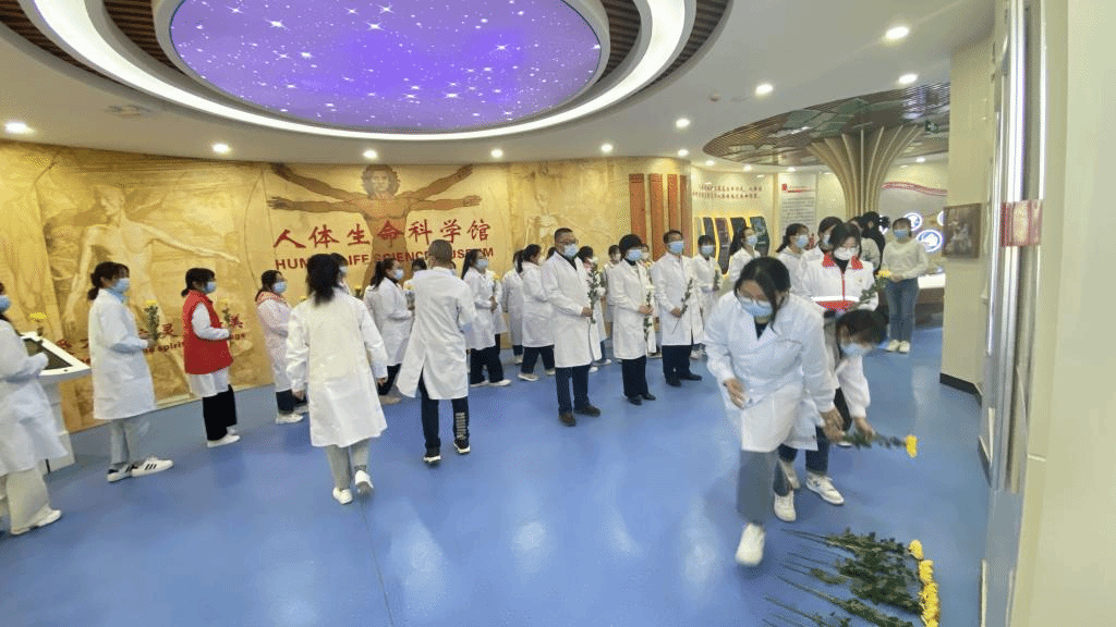 活动过程中,师生们带着尊崇之心,怀着感激之情,表达了对无私奉献的遗体捐献者们的追思和缅怀。员工们通过默哀仪式、诵读医员工誓词、献花感恩和参观人体生命科学馆等形式,深刻感悟了大爱无疆的崇高精神,表示要以优异成绩报答大体老师的无私奉献。
