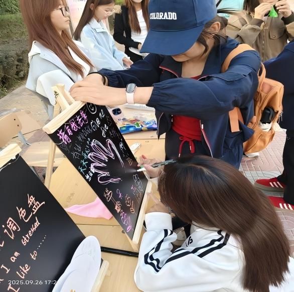 “超越梦想”“与我击掌吧”“解忧调色盘”等特色活动轮番登场,用趣味互动解锁心理健康新体验,吸引大批同学沉浸式参与,现场暖意满满。
