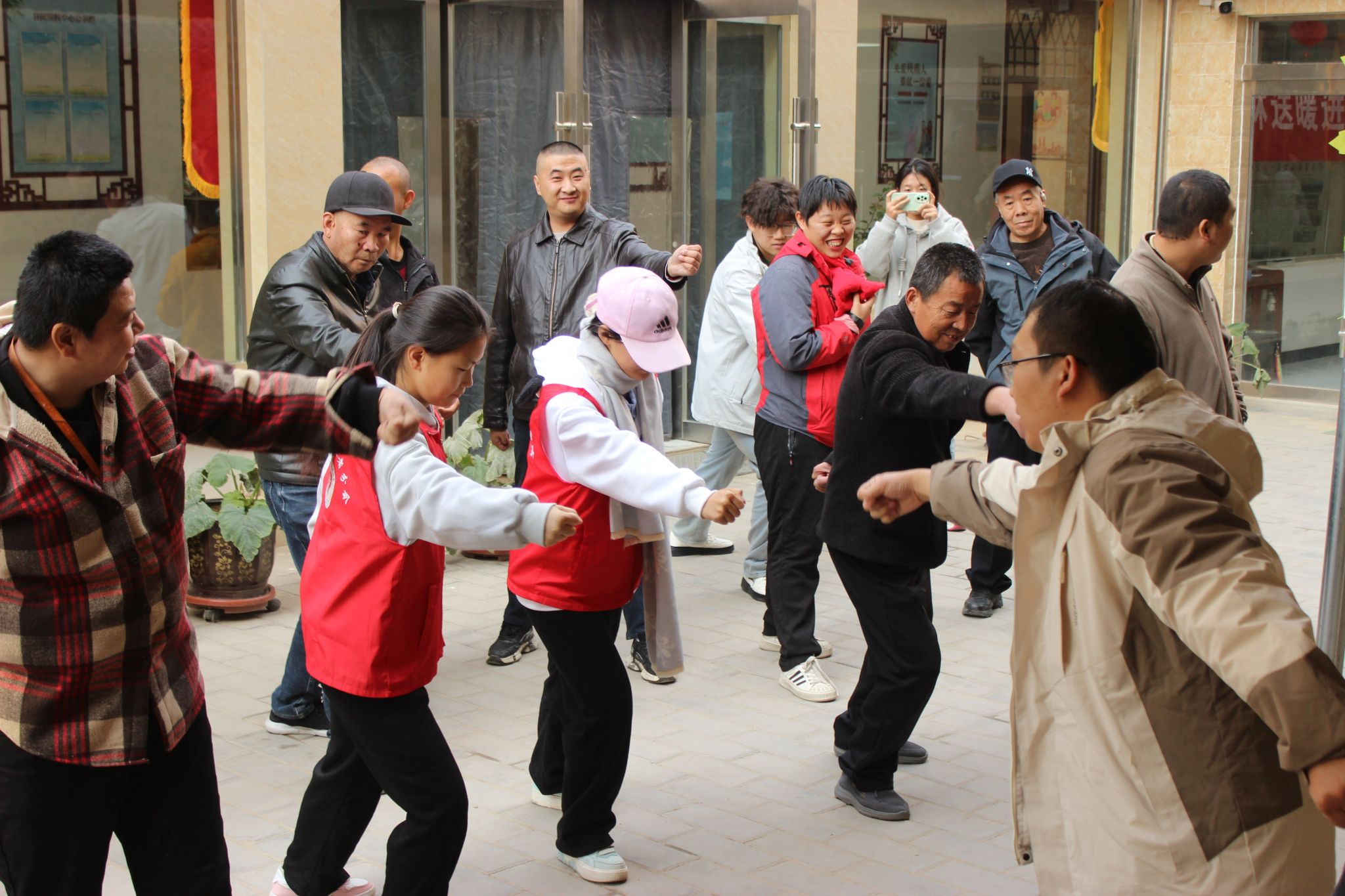活动现场,党员同志结合专业所学,围绕常见慢性病的预防与管理等内容展开讲解。他们用通俗易懂的语言拆解专业医学知识,配合生动的案例分析,从饮食调理、规律作息到定期体检等方面,为居民们送上实用的健康“锦囊”。随后,为了让社区居民掌握简单有效的日常锻炼方法,党员同志现场教学了传统健身法“易筋经”。同学们耐心示范每一个动作要领,从呼吸调节到肢体舒展,细致讲解,反复纠正。与此同时,青年志愿者们在社区指定区域为残疾人及其他有需要的居民提供了免费血压测量服务。