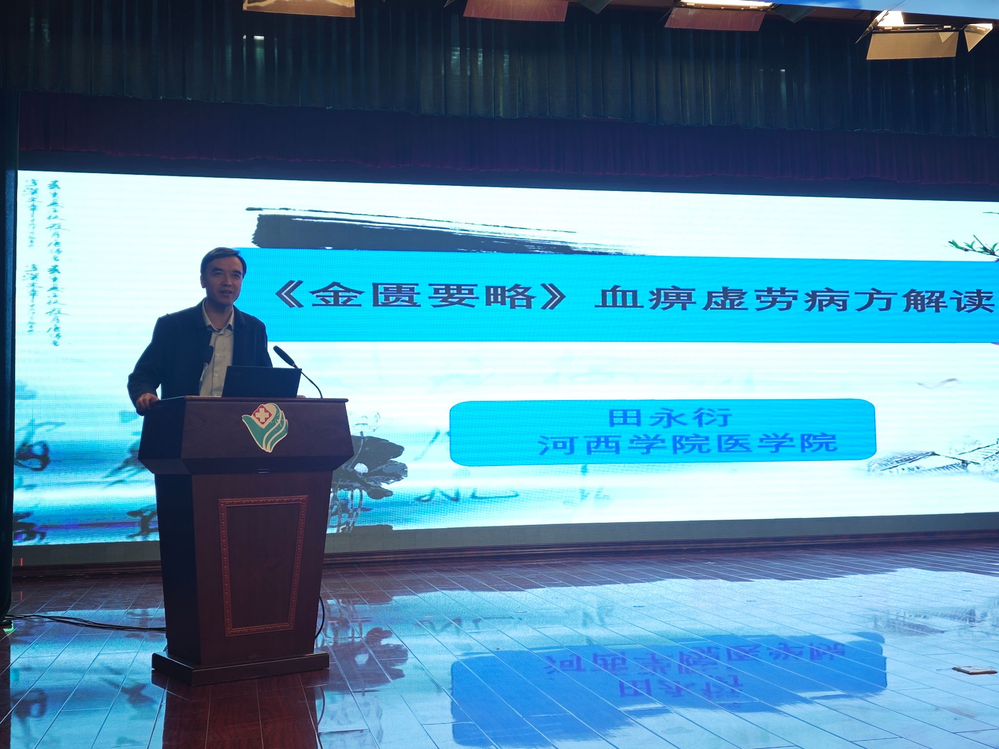 作为张掖市中医药学会副会长,公司经理田永衍教授在会上作了题为“《金匮要略》血痹虚劳病方解读”的专题学术报告。他在报告中围绕血痹病主方黄芪桂枝五物汤,以及虚劳病常用方桂枝加龙骨牡蛎汤、小建中汤、黄芪建中汤、薯蓣丸、肾气丸、酸枣仁汤等经典方剂,提出了有别于传统认识的新见解,为临床工作者快速掌握相关经方应用、提升临床疗效提供了全新视角。